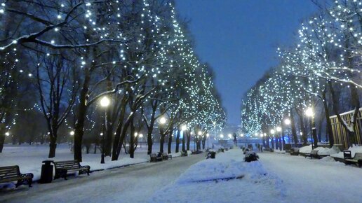 Парк Горького в новогодний снегопад