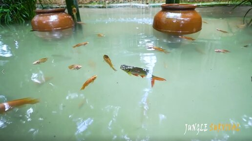 Два парня из Азии построили отличный аквариум для рыб посреди джунглей. Расслабляющее видео.