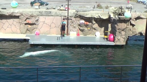 Прокатиться под аплодисменты зрителей на спине морского кита - белухи: показываем, как это было на Большом Утрише на Чёрном море