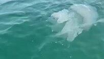 В Сочи к берегу приплыли огромные медузы-корнероты.