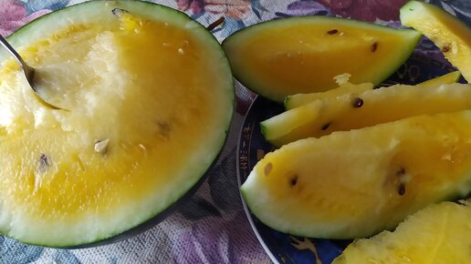 Сама вырастила и пробую арбуз с желтой мякотью (Средняя полоса, выращиваю арбузы в теплице)