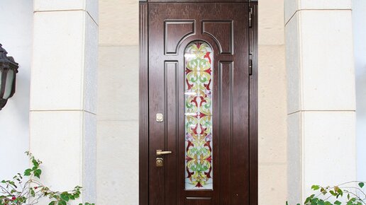 Входная металлическая дверь с витражом, купить в Москве в компании Дверной Мастер