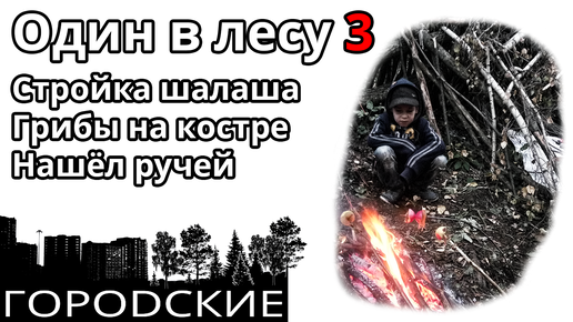 ☝ Строительство шалаша. Ручей. Жареные грибы на костре. Один в лесу (часть 3).