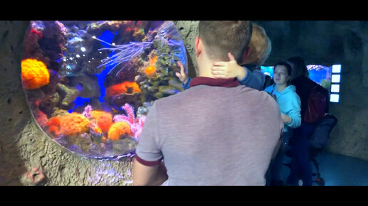 В Океанариум всей семьей. Сын впервые видит большую рыбу
