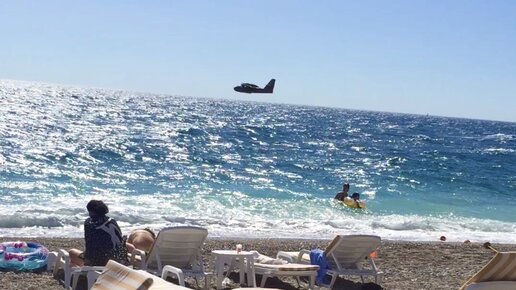 Внезапно прилетел Самолёт - амфибия и стал набирать воду на на глазах у туристов. Кемер ( Турция)