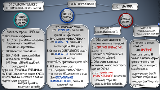 Брутальная видеошпаргалка о написании Н/НН в суффиксах полных и кратких причастий, отглагольных и отпричастных прилагательных