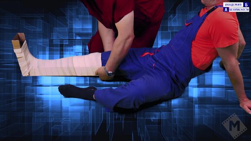 Транспортная иммобилизация при переломе костей голени с помощью шины однократного применения