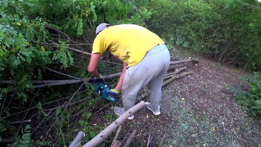 Как почистить участок от поросли с помощью аккумуляторного инструмента.