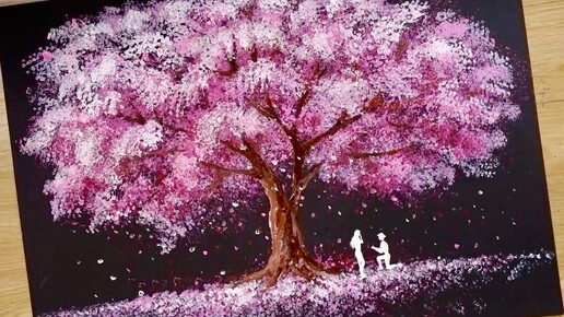 Губка для ванной, техника ватного тампона. Как нарисовать романтическую пару возле дерева