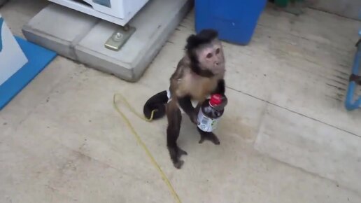 Обезьянка покупает сок в автомате
