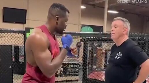 Фрэнсис Нганну на тренировке по боксу у легендарного тренера Тэдди Атласа