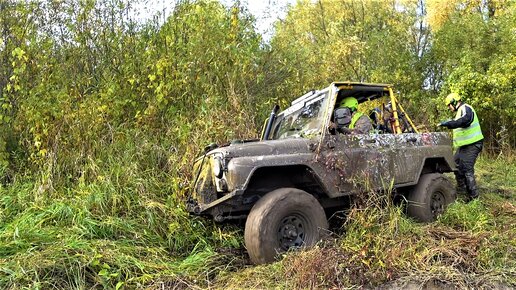 УАЗ прорывается сквозь метровую колею!!
