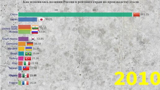 Место России по производству стали по сравнению с другими странами по годам