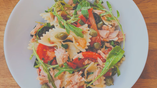 Салат с вялеными томатами, пастой и тунцом. Обязательно готовьте. Он очень вкусный.