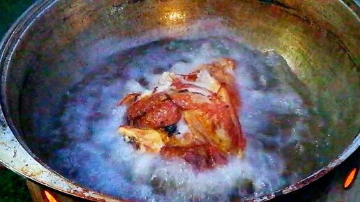 Вепрево колено в казане на костре. Рулька в пиве
