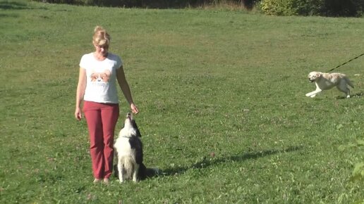 Наглядный пример послушной собаки против невоспитанного щенка. Короткое видео.