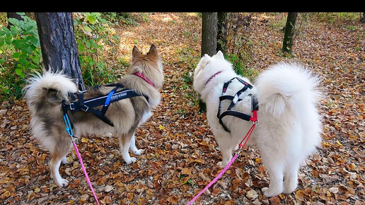 Каникросс в золотых листьях с северными собаками.