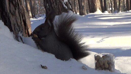 Где обитают чёрные белки? Показываем, что делала редко встречающаяся белка в лесном парке под Новосибирском зимой