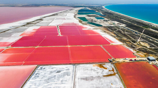 Розовые озера Крыма. Соляной промысел у Евпатории на озере Сасык-Сиваш.