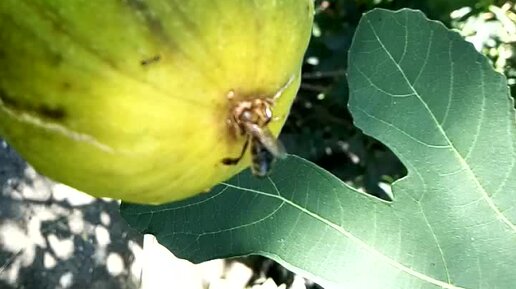 Пчела пьет сок из инжира и не замечает ничего вокруг!