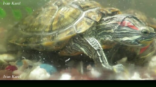 Черепахи окуня жуют.Драка за кусок.Смотреть за ними интересно.
