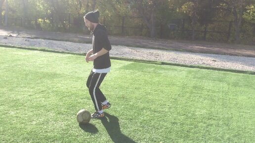 Обучение простым элементам техники ведения футбольного мяча. На футбольном поле.