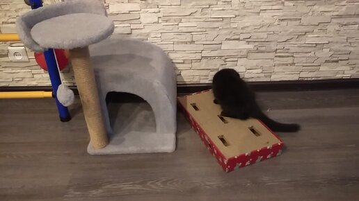 Загадочную штуку для кота взяли в Fix Price. Целый день пытается достать колокольчик.