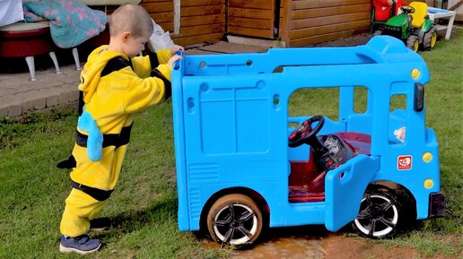 Застряли на автобусе в луже и стали вытаскивать его трактором