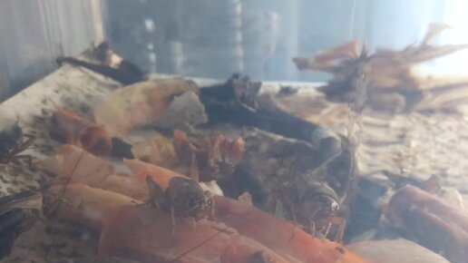 Утреннее застолье банановых сверчков: поют и едят, едят и поют