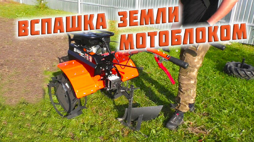Вспашка земли мотоблоком PATRIOT Урал. Огород в деревне.