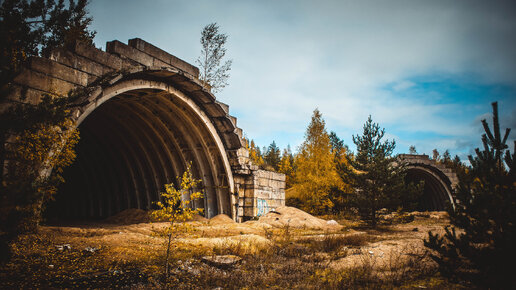 Заброшенный военный аэродром. Сохранились ангары. Раньше тут были самолёты