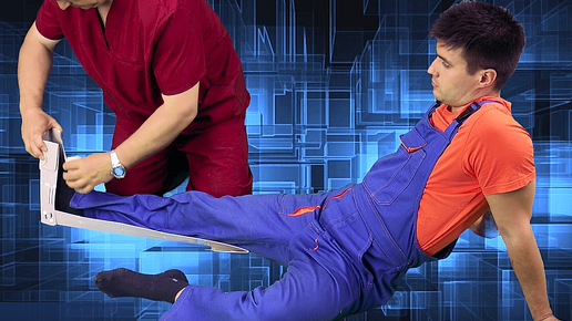 Транспортная иммобилизация при переломе костей голени с помощью шины для нижней конечности