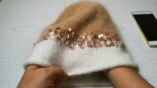 Вязаная шапка с пайетками. Модный тренд этой осени - он точно должен быть у Вас!