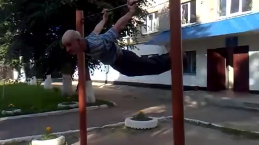 Деду 70 лет,а он вытворяет такое на турнике!!