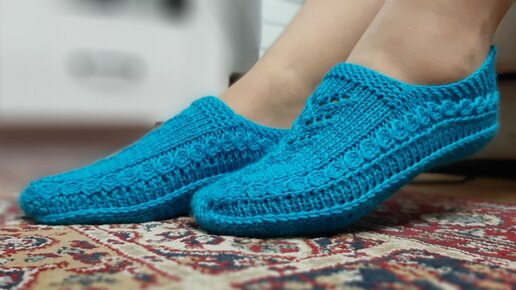 Очень удобные и Красивые тапочки следочки двумя спицами. Видео МК