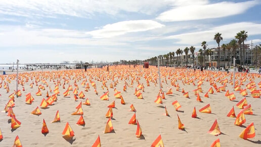 На пляже в Валенсии установили испанские флаги в память жертв COVID-19