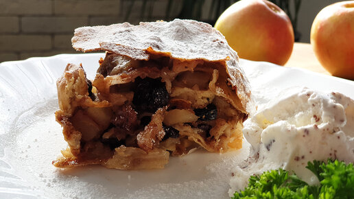 Простая выпечка из яблок. Штрудель на вытяжном тесте.