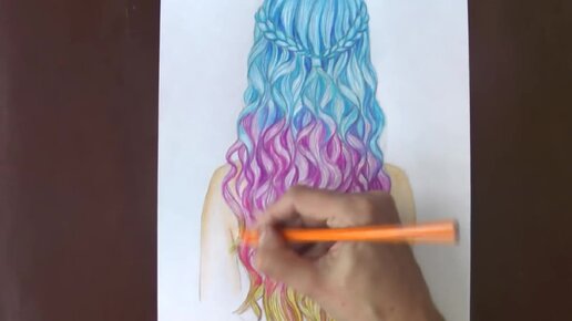Рисуем распушенные длинные волосы. Рисование цветными карандашами.