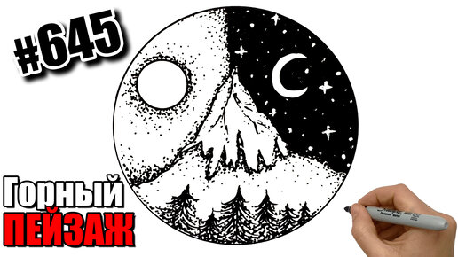 Как нарисовать Горный пейзаж День и Ночь? Рисунки для срисовки.