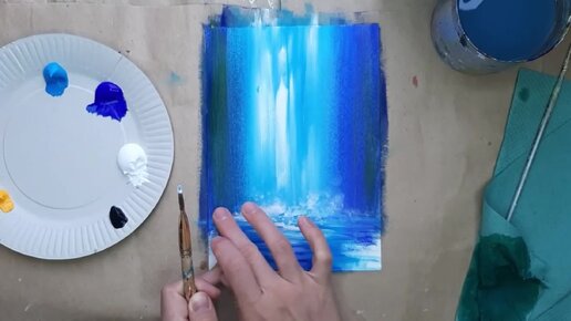 Водопад акриловыми красками. Видео-урок по рисованию.
