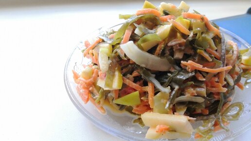 Салат из корейской моркови, морской капусты и яблок