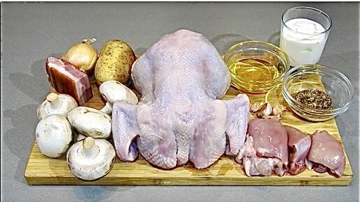 Такую курочку полюбят все. Запеченная курочка без костей с жюльеном и картофелем.