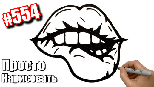 Как нарисовать Губы черным маркером. Рисуем просто губы.