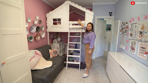 Детская для старшей дочки, где можно поучиться и поиграть. Кровать разместили в домике. Удобно ли ребенку?