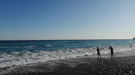 Абхазия. Октябрь. Шторм на пляже в реликтовой сосновой роще в Лдзаа. Показываю, сколько там туристов