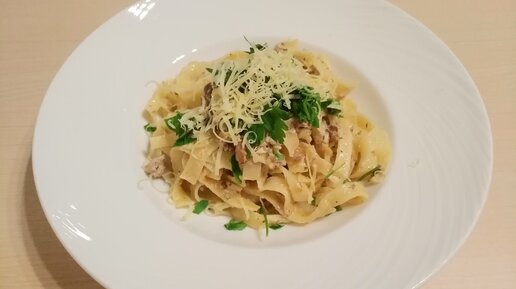 Готовлю пасту с фаршем и белыми грибами в сливочном соусе