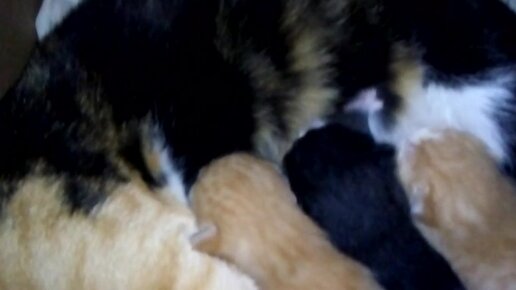 Кошка кормит маленьких котят