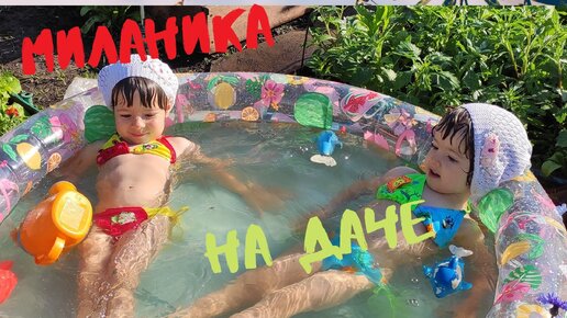 Дача, бассейн, купаемся на свежем воздухе в купальнике как мама, игрушки для детей