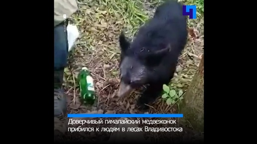 Гималайский медвежонок прибился к людям в лесах Владивостока