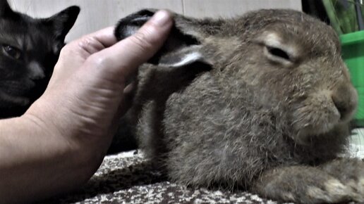 Вечерние нежности котов и зайца Шкварки)))